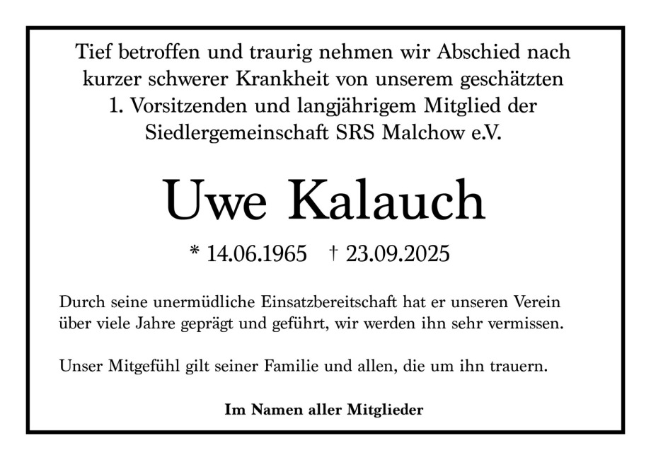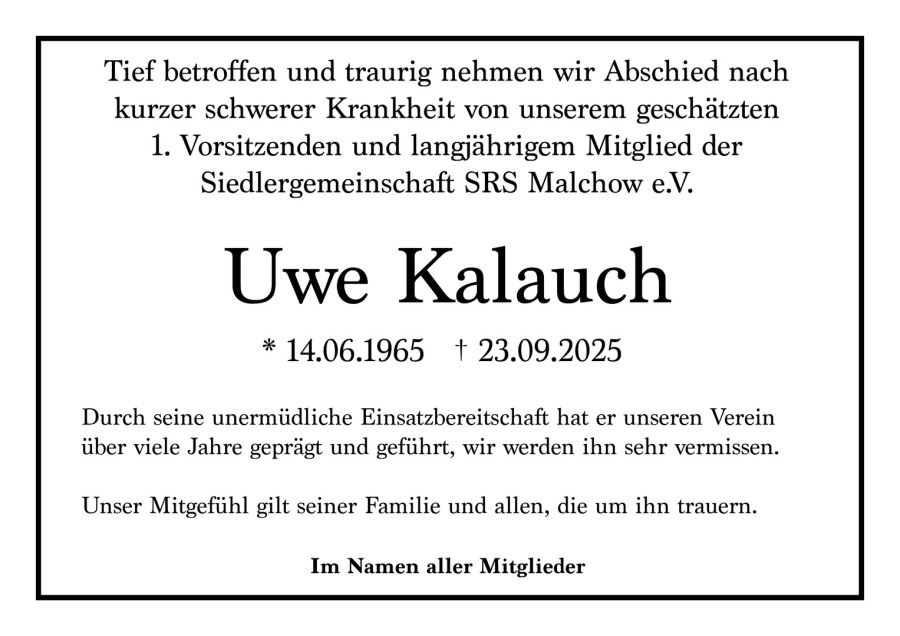Wir sind die Siedlergemeinschaft Stadtrandsiedlung Malchow e.V. (kurz: SG SRS Malchow e.V.) aus 13088 Berlin...